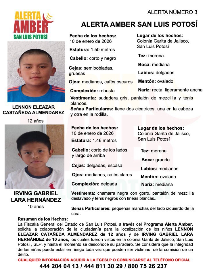 FISCALÍA ACTIVA ALERTA AMBER PARA LA LOCALIZACIÓN DE DOS NIÑOS